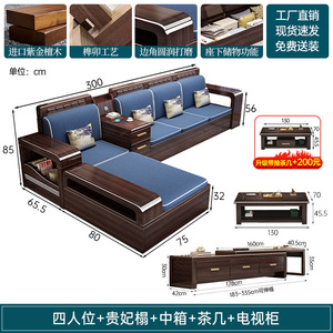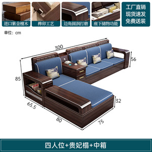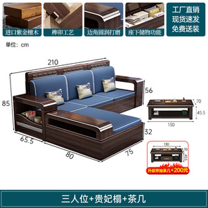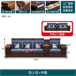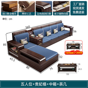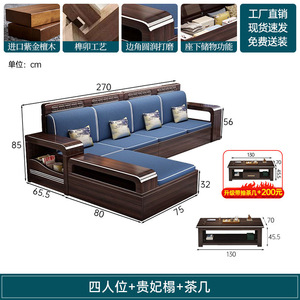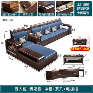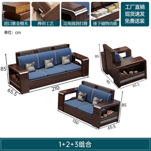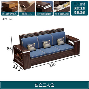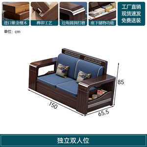 新中式木实木沙发组合家具檀两用冬夏储物紫金客厅现代简约小户型