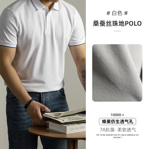 【7A抗菌+マルベリーシルク+リヨセル】アイスシルククールピケメンズ半袖夏カジュアル通気性ポロシャツ