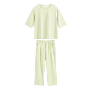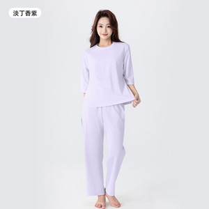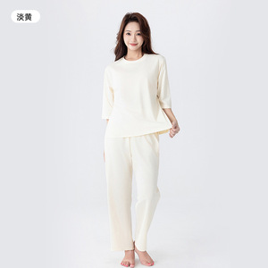 女性のためのミッドスリーブロングパジャマ 2025 新しい夏の純粋な綿のラウンドネックトップ薄い大きいサイズのホームウェアルーズスーツ