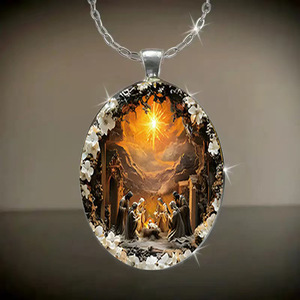 国境を越えた対外貿易ファッションは洗練されているdiy模様楕円形ガラス合金ペンダントネックレスメーカー直販