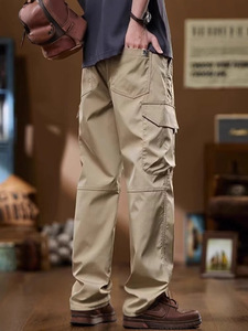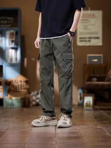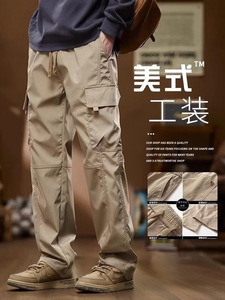 アメリカのトレンディなブランドの男性用ワークウェアパンツ、アイスシルクのルーズストレート空挺パンツ、夏用の薄い大きいサイズのスポーツカジュアルパンツ