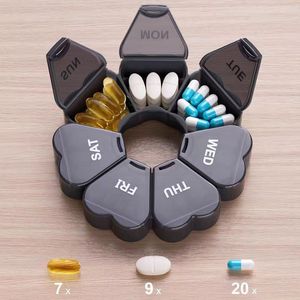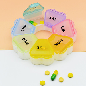 工場直販ポータブル薬箱 7日間レインボーペタル型丸型収納ポータブル小型薬箱