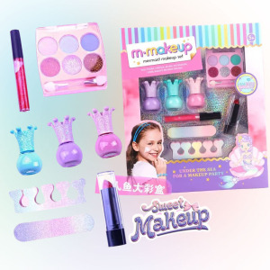 国境を越えた子供用化粧品、女の子用メイクアップおもちゃ、ままごと、洗えるアイシャドウ、マニキュア、ビューティーセット