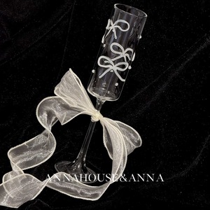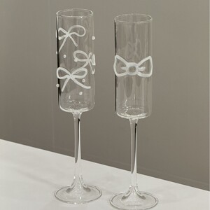 【蝶結びリボンシャンパングラス】絶妙な手描きの蝶結びの高脚グラス ロマンチックな結婚式の乾杯グラス