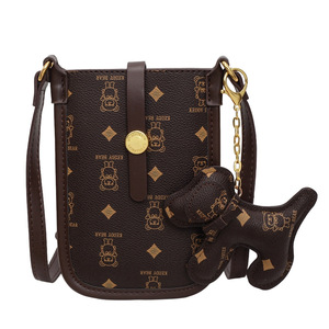 ハイエンドの軽い高級ミニ携帯電話バッグ 2025 新しい漫画クマプリントショルダーバッグカジュアル多用途小さな正方形バッグ