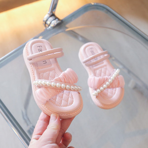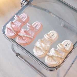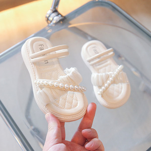 子供スリッパ 2025 新しい女の子サンダルとスリッパツーウェア夏パールプリンセススタイルソフトソールサンダル外国貿易卸売