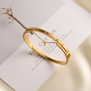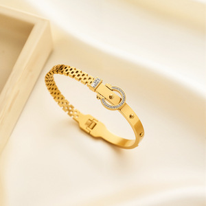 クロスボーダー新作18Kゴールドチタン鋼四つ葉のクローバーホースシューバックル非退色バックルブレスレットハイエンドダイヤモンドブレスレット