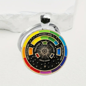 国境を越えた売れ筋のレインボートーンアートガラスとメタルキーホルダー - ラウンドサンエクスプロージョンデザイン
