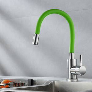 ロシア貿易カラフルなユニバーサルシリコーンゴムチューブスプレーステンレス鋼ボディホットとコールドキッチンシンクの蛇口
