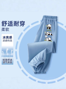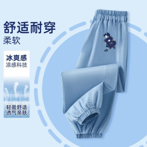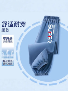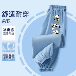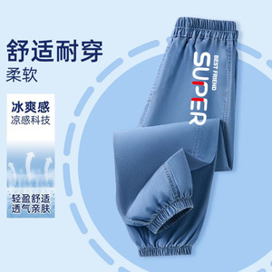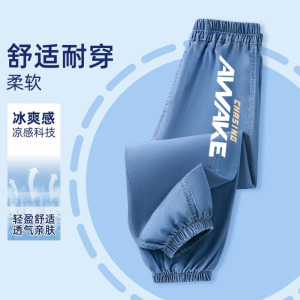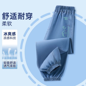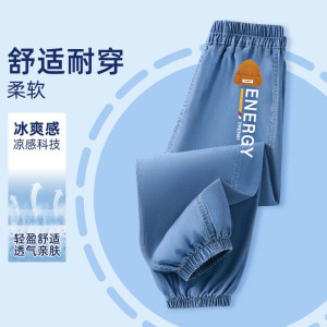 子供の夏のパンツ男の子薄いアイスシルクデニム防蚊パンツ男の子 2025 新しいハンサムな多用途ズボントレンディ