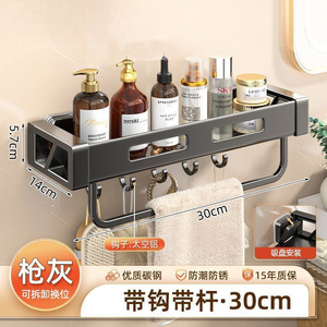 吸盤ガン グレー 収納ラック 30CM フックとロッド付き