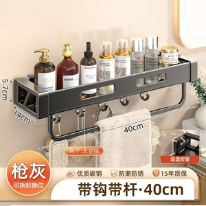 吸盤ガン グレー 収納ラック 40CM フックとロッド付き