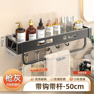 吸盤ガン グレー 収納ラック 50CM フックとロッド付き