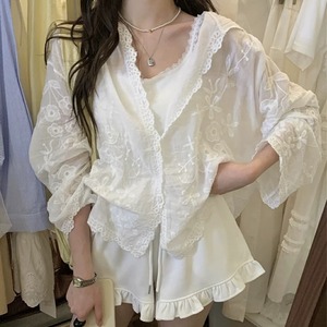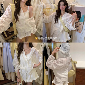 デザインレース刺繍フード付き日焼け止めシャツ女性のための 2025 春カジュアル多用途ルーズ長袖カーディガントップトレンディ