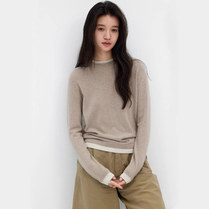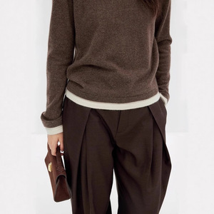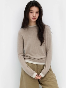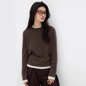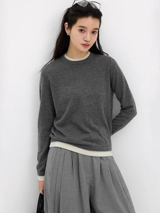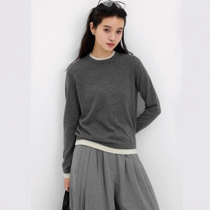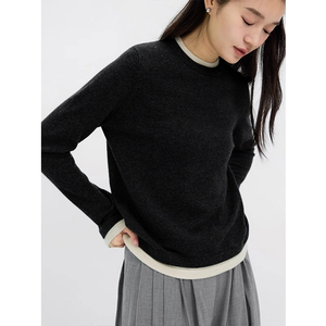 大码撞色假两件圆领针织打底衫女秋冬慵懒高级感灰色毛衣内搭上衣