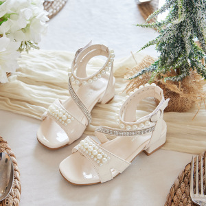 女の子ハイヒールサンダル 2025 新しい夏ソフトソール中大型子供プリンセススタイルファッションハイエンドカジュアル子供サンダル