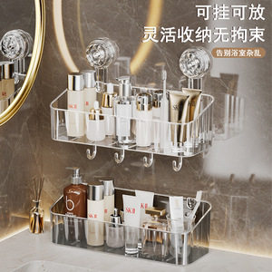 トイレ用バスルームシェルフ穴なし壁掛け式花びら吸盤収納ボックス洗面台化粧品収納ラック