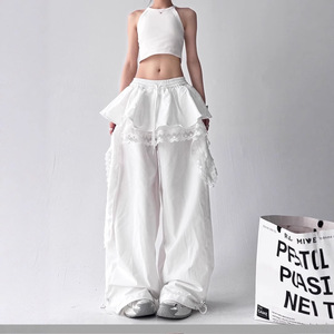 デザインバットカーテンレーススプライシングカジュアルパンツレディーススウィートガール新しいルーズカジュアル多用途ヒップホップオーバーオール