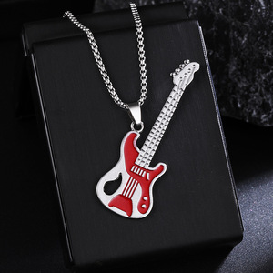 新しいギターペンダントネックレスメンズカラフルなオイル滴下合金楽器ステンレス鋼ペンダント DIY ジュエリーアクセサリー女性