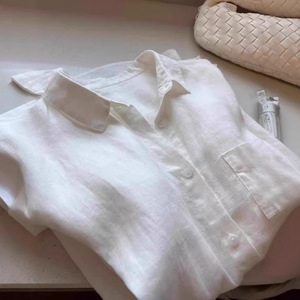 CHAO級おすすめ!オールドマネースタイルホワイトテンセルラミーラペルシャツレディース春夏気質カジュアルリネントップ