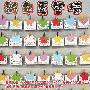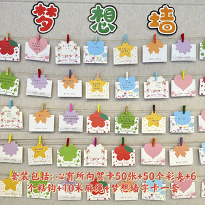 グリーティングカード シングルカード 50枚+麻縄粘着フッククリップ ウィッシュウォールワードカードセット