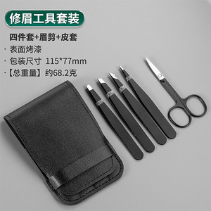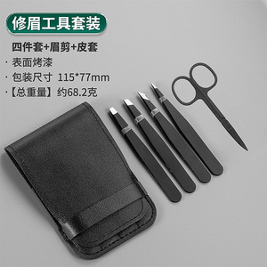 黒平+斜め+ナイフ+チップ+眉毛トリマー+オールブラック眉毛トリマー+双頭アイブロウブラシレザーケース(アイブロウクリップ7本セット)