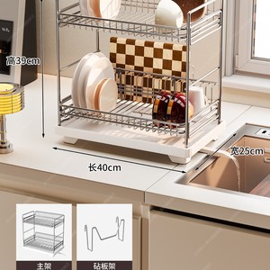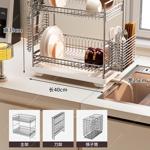 シンクの食器棚304ステンレスの水切り棚の多機能の二重の食器棚の台所の収納棚