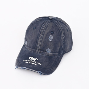 美式复古做旧蓝色棒球帽女春夏新款破洞字母刺绣帽子显脸小鸭舌帽