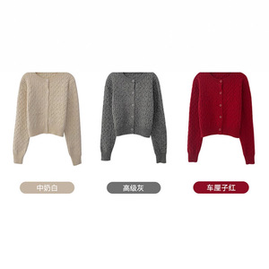 ソリッドカラーショートレトロツイスト長袖セータージャケット女性のための秋と冬の韓国語バージョンインルーズニットカーディガントップ女性のための
