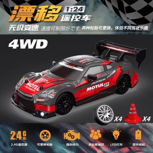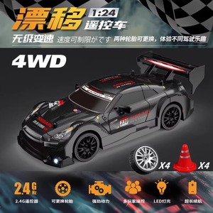1/24スケール高速ドリフトRCリモコンカーGTR四輪駆動リモコンカー充電式ライト付きおもちゃの車