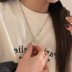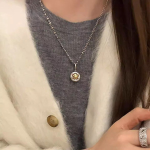 レトロなゴールドとシルバーのスマイリーフェイスひまわり女性ニッチハイエンドライト高級気質子供用スマイリーフェイスネックレス新しいアクセサリー