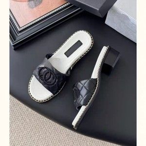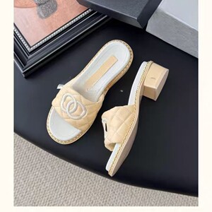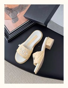 2025 春夏の新スタイルの小さな香りの菱形スリッポン女性のアウターウェアカラーブロック厚底ファッションビーチサンダル