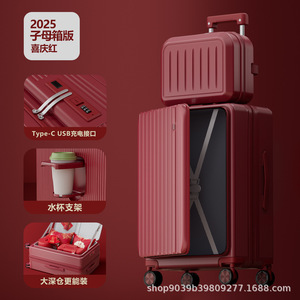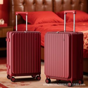新款红色行李箱婚嫁旅行箱前开盖登机箱万向轮密码箱结婚拉杆箱女
