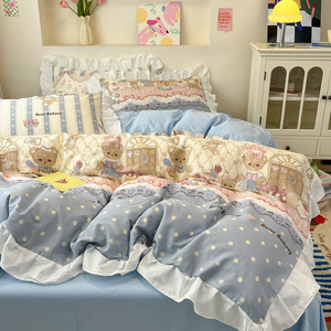 純綿ロリータ四点セットプリンセス風少女心レース純綿シーツ布団カバー学生寮三点セット