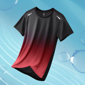 T15 黒と赤のスポーツ T シャツ [速乾性と通気性]