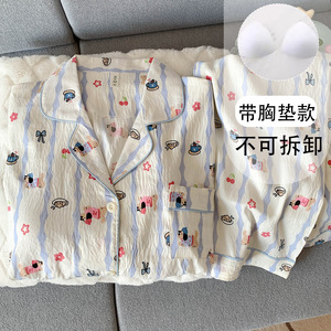 (固定胸パッド) 【Yunduo Mian】ブルーゲベイベイベア長袖+ズボン