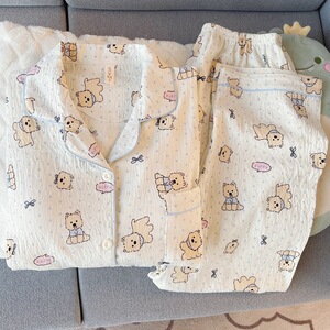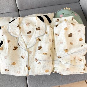 (胸パッドなし) 【Yunduomian】ドットベア長袖+ズボン