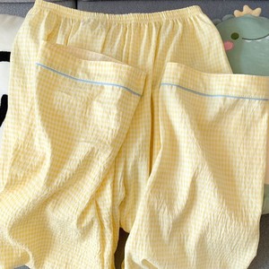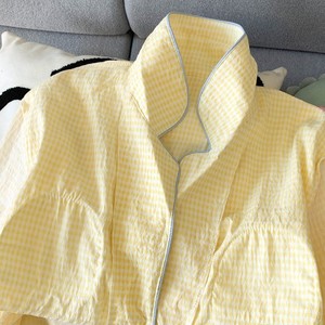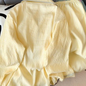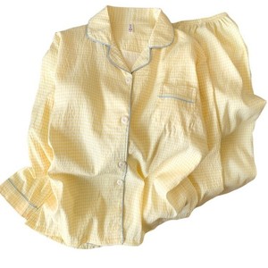 (胸パッドなし) 【Yunduomian】パピーイエローチェック長袖+ズボン