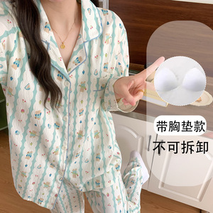 (胸パッドなし) 【Yunduomian】ミルクブルーキャット長袖+ズボン