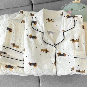 (胸パッドなし) 【Yunduomian】水玉ダックスフント長袖+ズボン