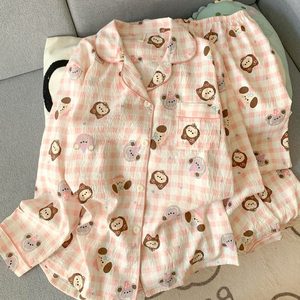 (胸パッドなし) 【Yunduomian】カエルチェック柄クマ長袖+ズボン