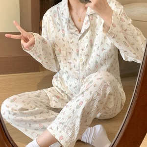 (胸パッドなし) 【Yunduomian】チューリップミルクうさぎ 長袖+ズボン