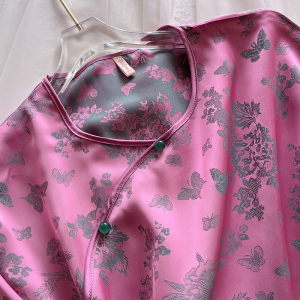 2025 新しいミッドスリーブズボンシルクパジャマセット女性のための春と夏の新中国風ジャカード桑シルクホーム服