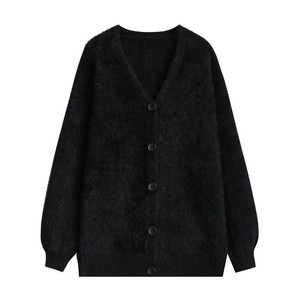 女性用イミテーションミンクカーディガンジャケット、ゆったりとした韓国版2025秋冬新スタイルレイジースタイルアウタースリムVネックセーター