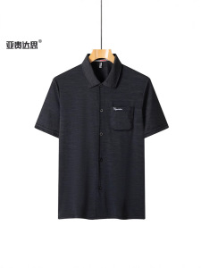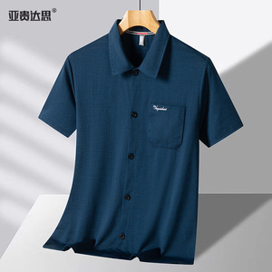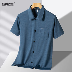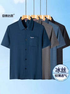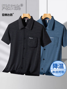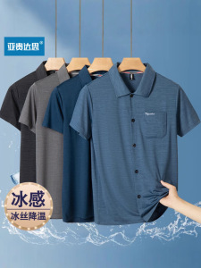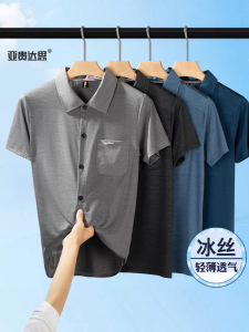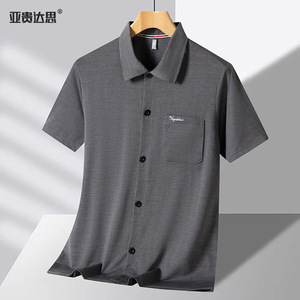 中高年男性向けの新しい夏の薄手の半袖シャツ、Tシャツ、お父さん着用のアイスシルク速乾カーディガン、おじいちゃんシャツ