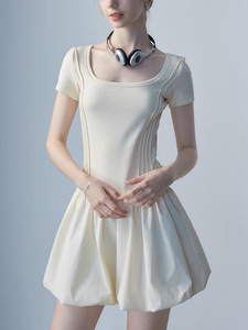 EGGK フレンチエレガントパッチワークドレス夏の新デザインファッショナブルな気質ウエスト痩身フラワーバドスカート
