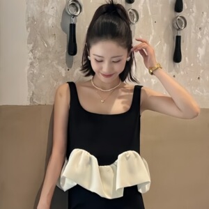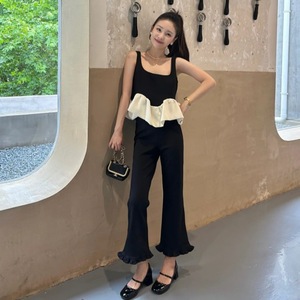 年齢を軽減するためのハイエンドデザインのパッチワークピュアディザイアホットガールキャミソールトップとハイウエストストレートパンツの完全なセット