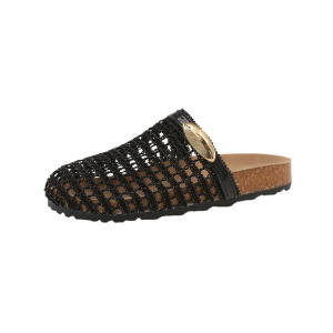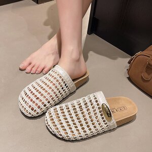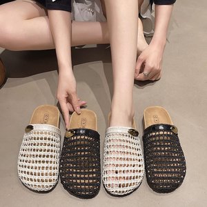 包頭中空通気性サンダル女性のための 2025 夏の新しいフラット女性の靴アウターファッション多用途網タイツ靴