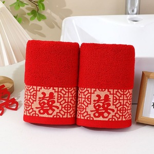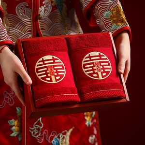 結婚タオル、婚約、新婚記念品タオル、赤いハッピーワードギフトボックス、女性の持参金のお返しギフト
