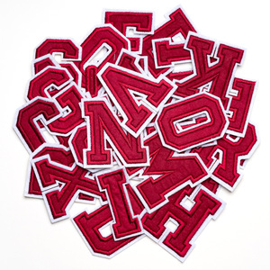 クロスボーダーの赤い白い縁の26の英語のアルファベットのコンピュータの刺繍の布はゴムを貼って服の装飾の布を貼ります。